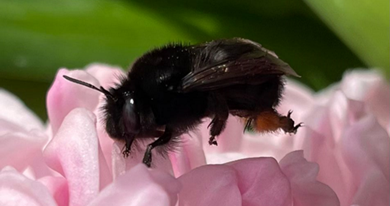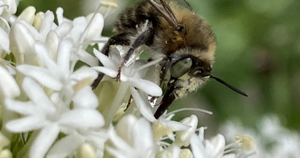 Another key resident is the ashy mining bee (Andrena cineraria), a ground-nesting species with striking black and white banding. Ground-nesting habitat is rare in urban London, making Inner Temple Garden an important refuge. Recently, a male lek (a congregation of males seeking mates) was recorded near a Viburnum plicatum by the mulberry tree.