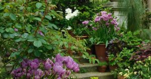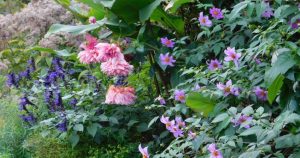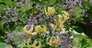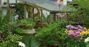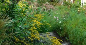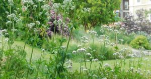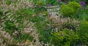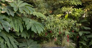 The Borders to the east and west contain a calming woodland edge mix of perennials, choice Hydrangeas and unusual specimens such as the rare Chinese Fairy Bells (Disporum longistylum ‘Green Giant’). The Garden team also add creative planters and pot displays in locations across the Garden.