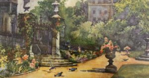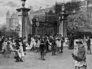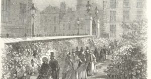 The most significant moment for the Garden which still defines the layout today, was the construction of Bazelgette’s Victoria Embankment. The Embankment was formally opened in July 1870 and the wall, railings and carriage gates which still mark the southern edge of the Garden were designed by Bazalgette to give continuity of design with the Garden and the new Embankment. The new Garden layout resulted in the direct access to Garden from the river being lost, though the overall footprint of the Garden was enlarged with land reclaimed from the Thames.