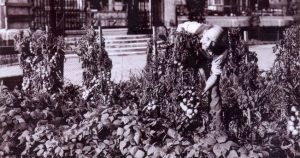 It was also during the Victorian era, when the grime and soot of industry made horticulture a struggle, that The Inner Temple began its tradition as host to some of London’s premier flower shows. It was the instigator of an annual show of chrysanthemums – and then in 1888 the Royal Horticultural Society chose the site to stage its Spring Flower Show. They returned each year until 1911 when the shows increasing popularity forced the RHS to find a larger home – the Royal Hospital at Chelsea. The Second World War saw the borders turned over to allotments, and the upper part of the garden became a repository for the rubble from Blitz damage.