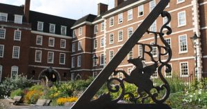 Visitors to the Inner Temple, unable to miss the ubiquitous symbol of the Pegasus on buildings throughout the Inn, frequently seek the origin of the emblem. Would that we knew! Without definitive evidence, several theories have been put forward. One holds that the Inn adapted the design from one of the Knights Templars’ seals, the image of two knights seated on one horse, which is reproduced in the bronze statue by Nicola Hicks on Ptolemy Dean’s Millennium Column in Church Court. It is not known whether the Templars aimed to indicate by the two knights sharing a horse the original poverty of the order or the charity and brotherly love that it embodied. Either way, it is possible that the two knights came to represent the wings of the Inner Temple’s flying horse. Some credibility is lent to the hypothesis by the Middle Temple’s subsequent adoption of another Templar seal image, the lamb and flag. Another interpretation assigns the origins of the flying horse to an image on the tiles in the Temple Church, which showed a single mounted knight holding a shield with bars, which might have resembled a wing.